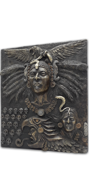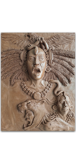 La serpiente es el hilo conductor con el que traté de representar las etapas de la vida del Tlatoani, desde su nacimiento, encumbramiento, sus conquistas y hasta su muerte.